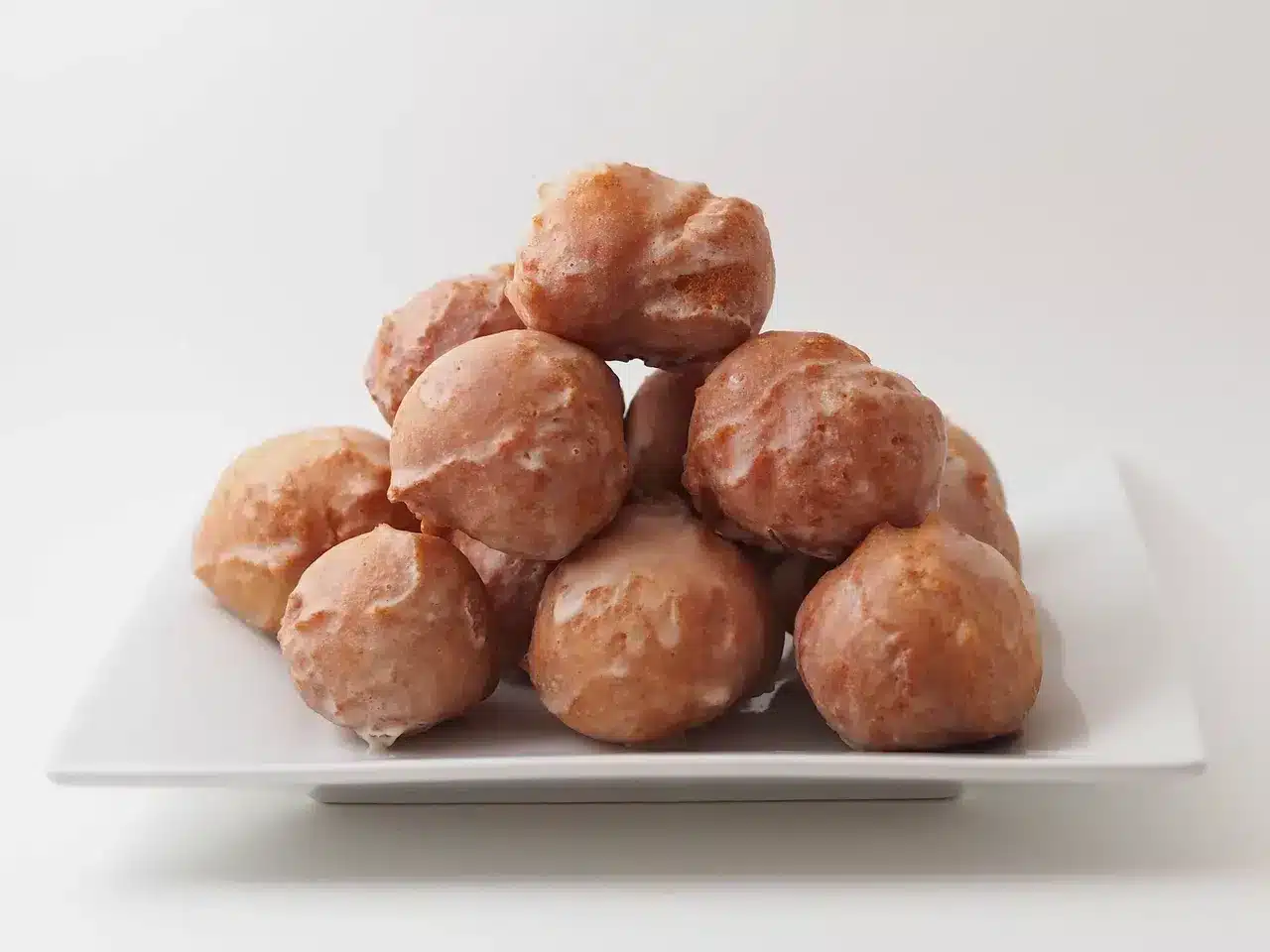 7. To make the glaze, whisk together the powdered sugar, milk, and vanilla until smooth. Dip the doughnuts into the glaze and let cool before serving.